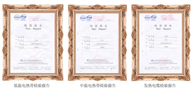 為了保證檢驗報告的權威性,時效性,針對性。我司熱帶,發熱電纜產品選擇國家最權威的檢測機構-國家電線電纜質量檢測中心進行送檢。經過三四個月的檢驗周期,目前我司已重新獲得低中溫自控溫熱帶,發熱電纜國家電線電纜檢驗報告。所以產品質量均達到或優于檢測標準,這是對我司近期生產的產品質量,包括原材料采購一重要評定。我司將陸續更新現有公司資質,做到與時俱進。