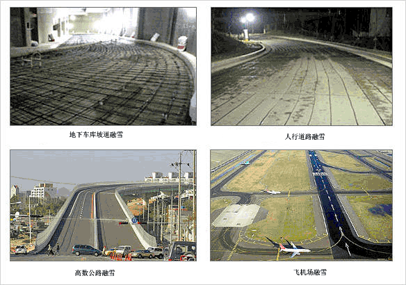潔凈的人行路面,使人們活動無冰雪困擾;避免傳統(tǒng)道路除冰雪方式帶來的昂貴費用及除雪劑給路面帶來的損害 ;有效的融化坡道、階梯、直升機(jī)起降站和其它路面上的冰雪,清除危險,減少不便;